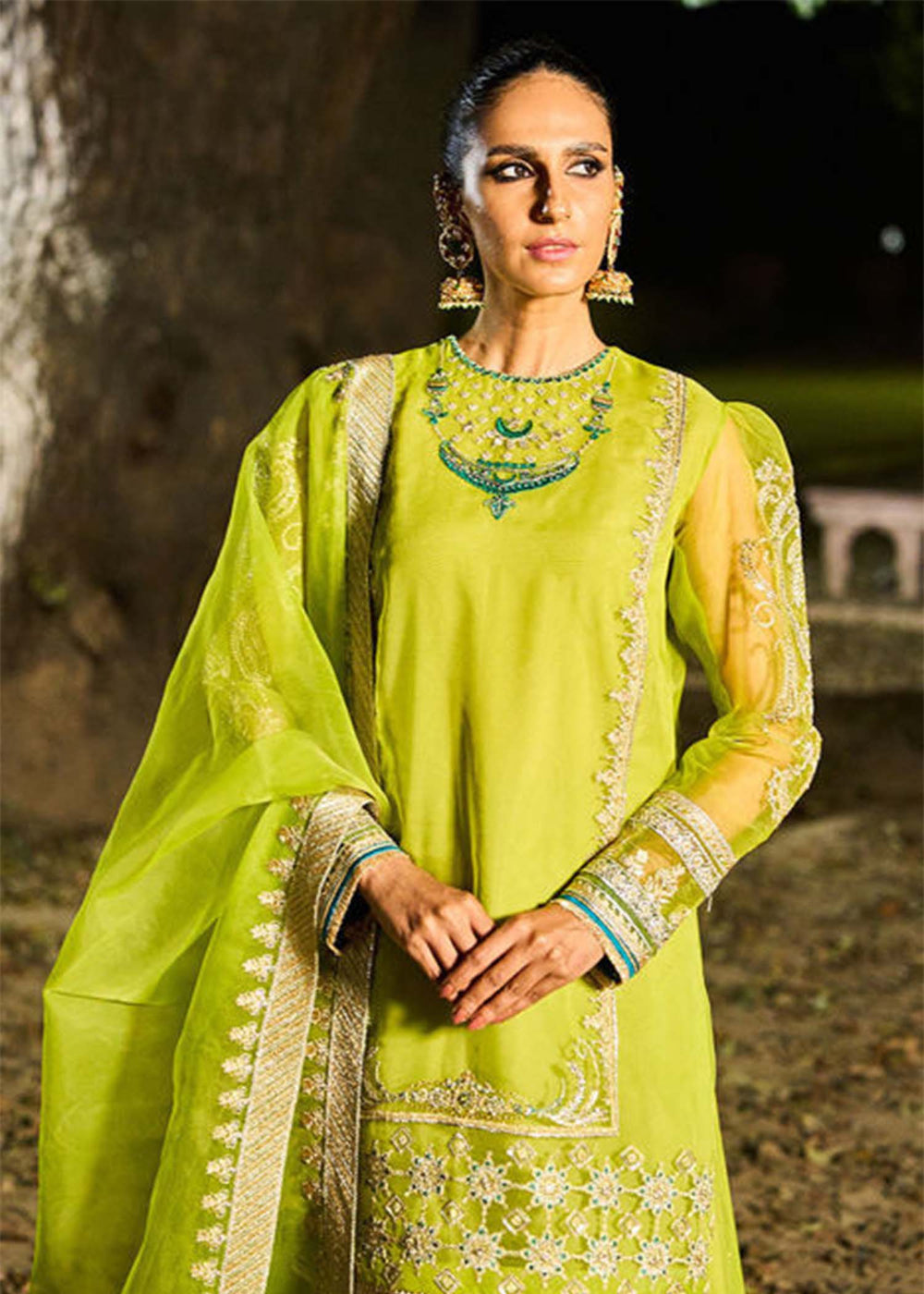 At Ali Xeeshan Empire, we understand that today’s bride seeks more than just traditional beauty; she desires confidence, comfort, and a touch of modern sophistication. Our mehndi dresses for bridal are designed to embody that perfect blend. We experiment with contemporary cuts, layered silhouettes, and statement dupattas while maintaining the essence of traditional bridal craftsmanship.
