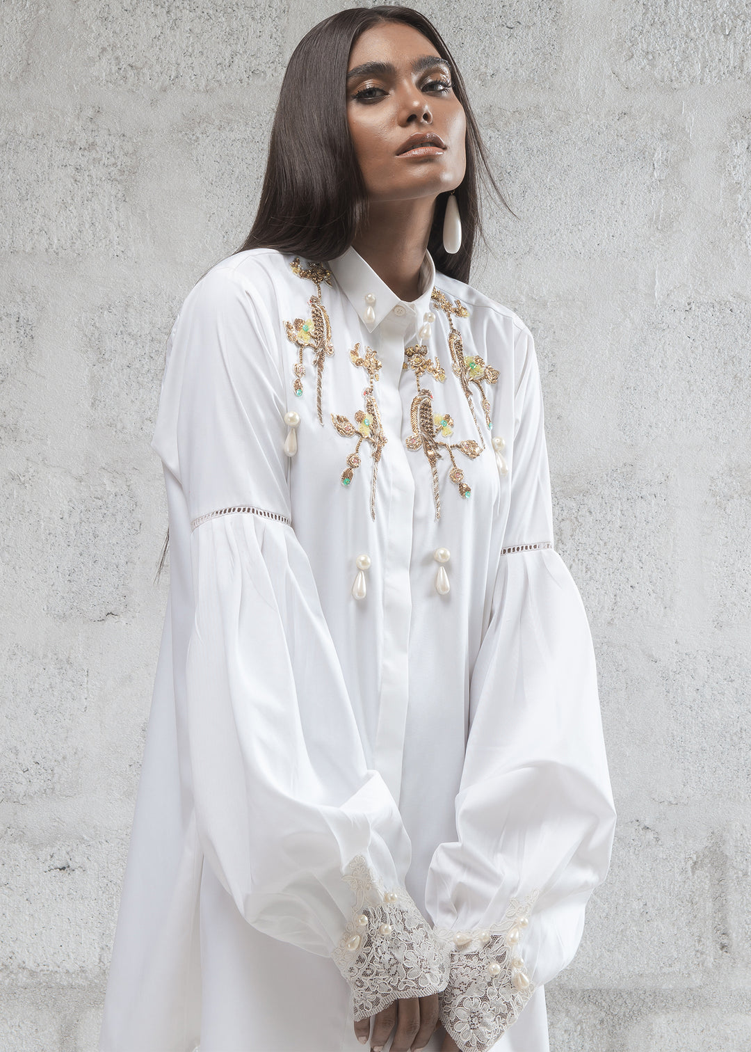 • Gul-e-Rana: Floral embroidery layered over a rich canvas of color