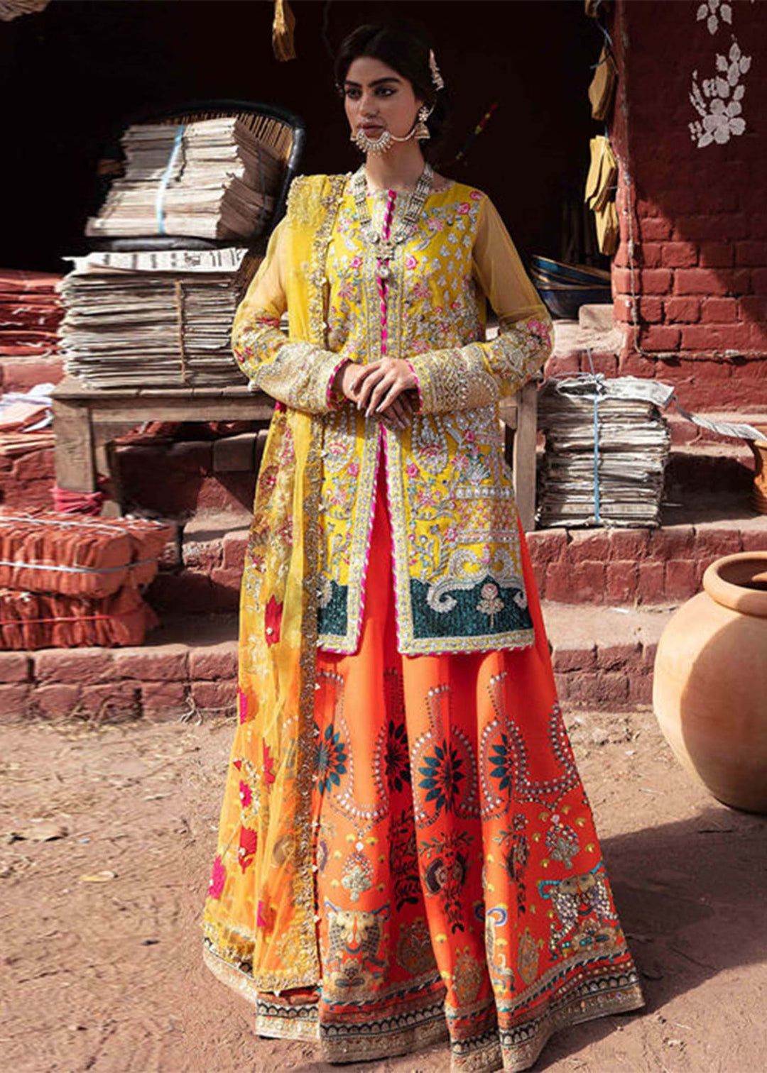 • Gul-e-Rana: Floral embroidery layered over a rich canvas of color
