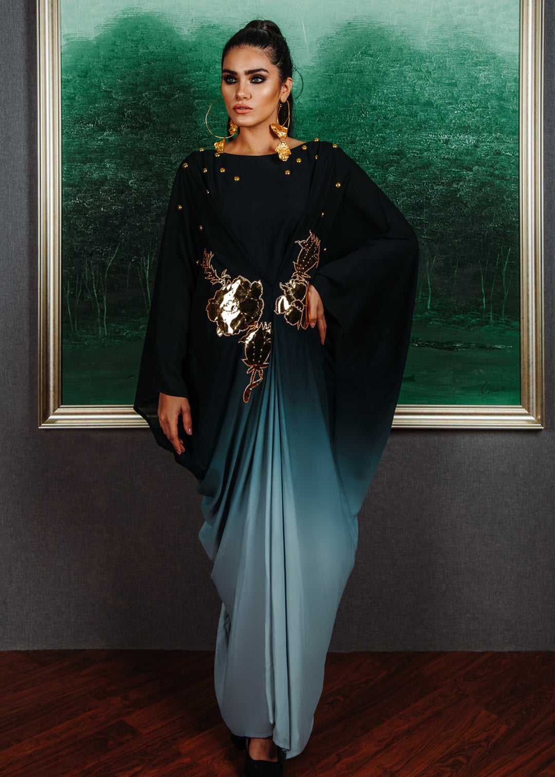 • Gul-e-Rana: Floral embroidery layered over a rich canvas of color